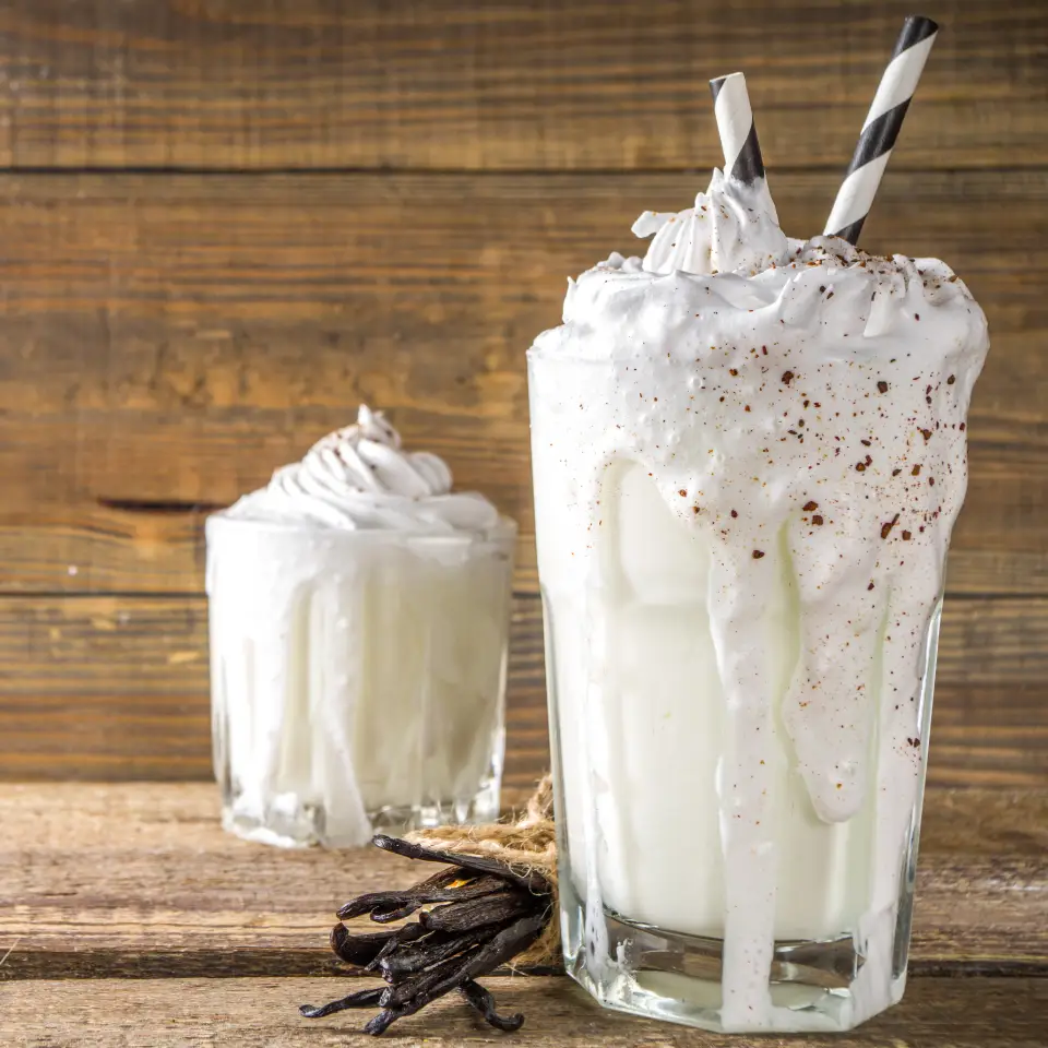 Sorvete de baunilha, leite, doce de leite e café solúvel.